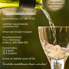 Viininmaistajaiset Lyöttilän Maamiesseurantalolla keskiviikkona 13.5. klo 18. Omat lasit (6 kpl) mukaan. Ilmoittautumiset 10.5. mennessä Eilalle p. 044 0888 695. Kurssimaksu 20 € jäsen ja 30 € ei-jäsen. Kurssi on kaikille avoin (K18). Tervetuloa maistelemaan kesän uutuksia! Järj. Iitin Lyöttilän Marttayhdistys ry |